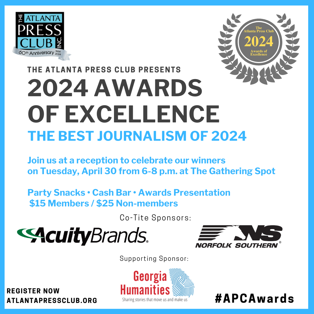 THIS EVENT SOLD OUT. The Atlanta Press Club Awards of Excellence celebrates the best of journalism from the previous year. Awards are given within print, broadcast, and digital categories.