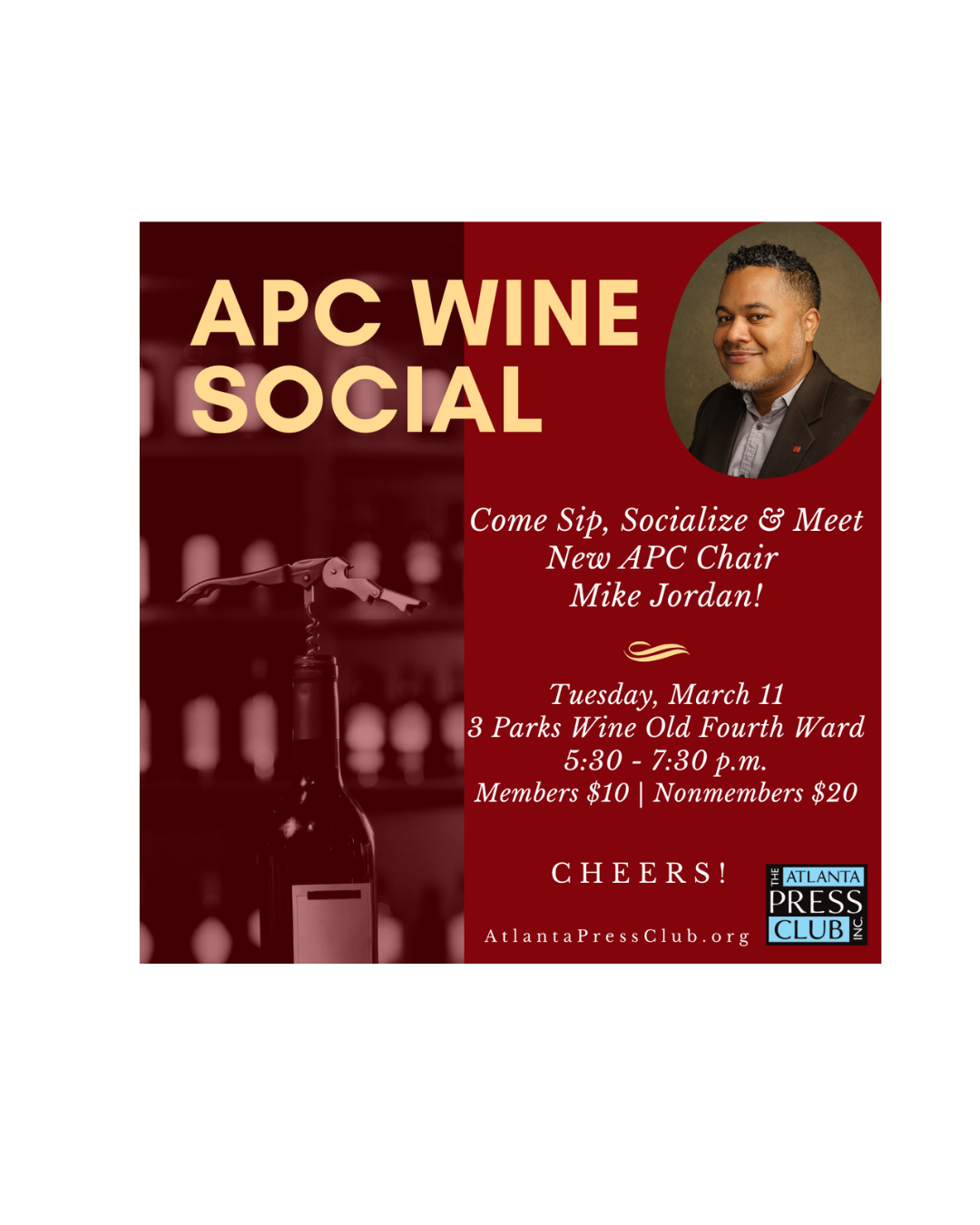 SOLD OUT! Come Sip, Socialize and Meet New APC Chair Mike Jordan at 3 Parks Wine Old Fourth Ward!