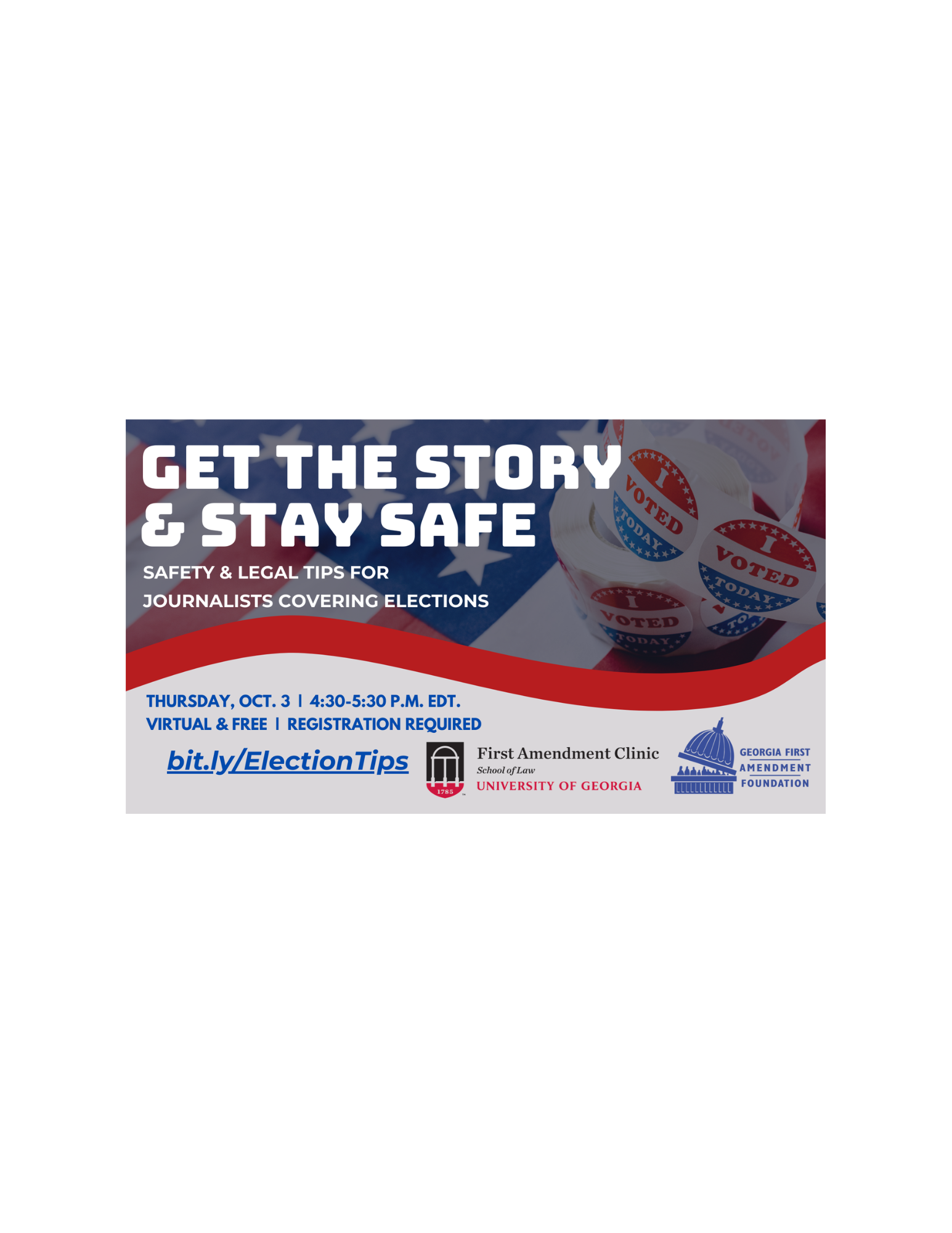 This free webinar, presented by legal experts and a veteran journalist, will offer in-the-field tips for exercising press freedoms and staying safe. Learn how to prepare ahead of time and what to do to protect yourself in the moment while reporting on elections.