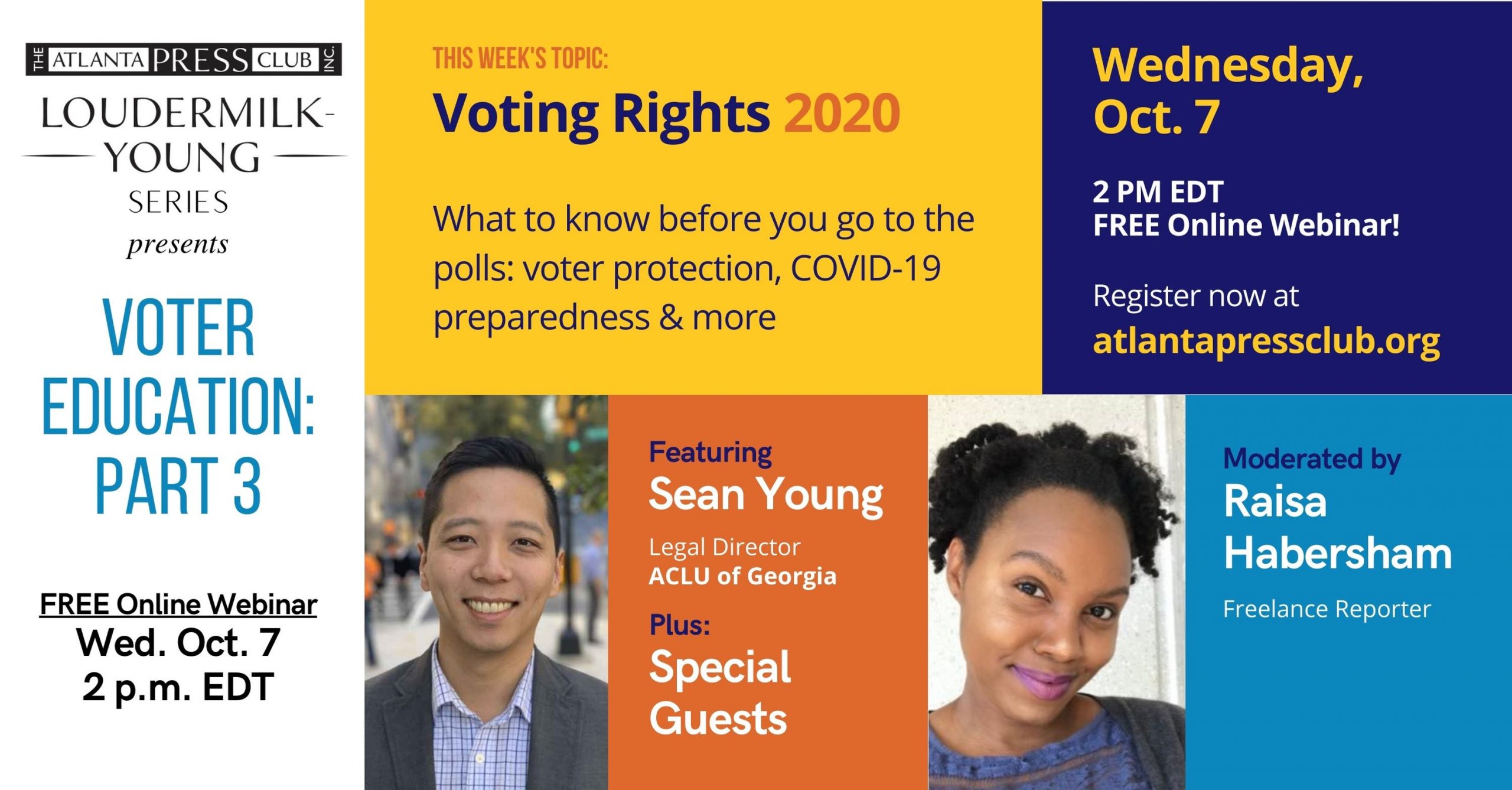 Join us on October 7 at 2 p.m. for a special Loudermilk-Young Series presentation about voting rights and what you should know before you head to the polls. Plus: An update on COVID-19 precautions for staying safe while voting!